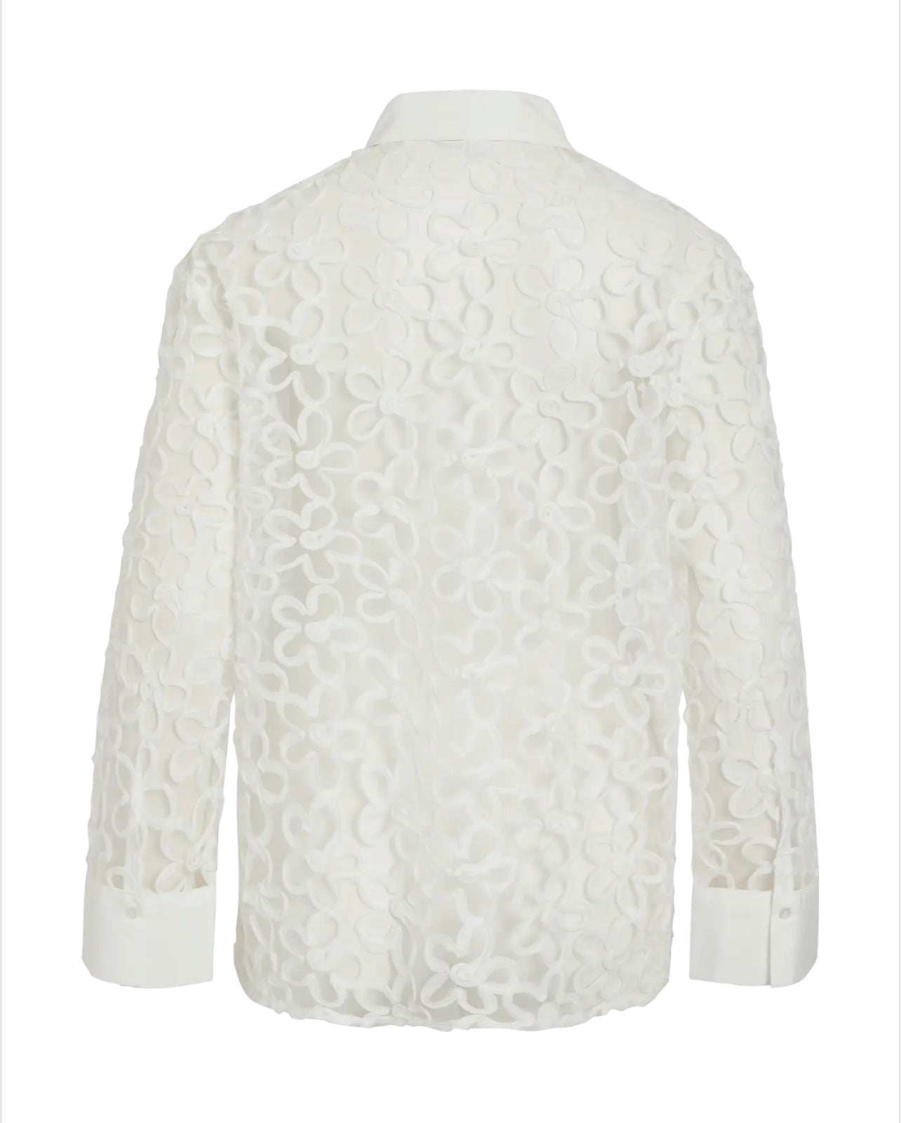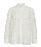 Baja fra Vila er en skjorte i gjennomsiktig stoff, fra Vila i loose fit. Skjorten har standard krage, lange ermer og knapper langs midjen. Den har flotte blomster detaljer.