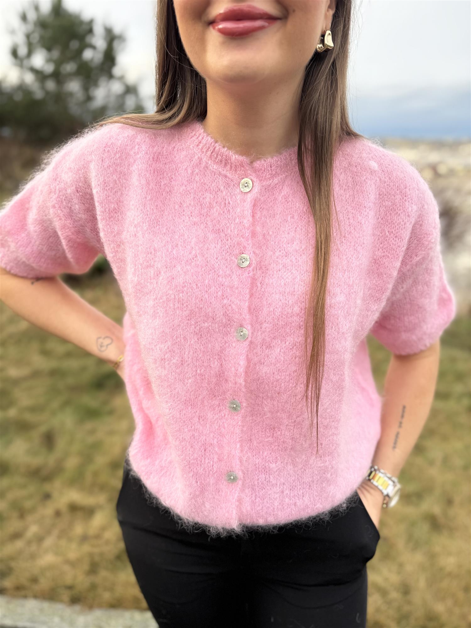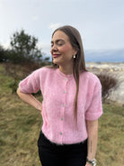 Lorell Knit Cardigan gir deg vårfølelse med sin myke, fluffy mohairblanding og freshe fargetoner. Cardiganen har korte ermer og lukkes med knapper i front.
