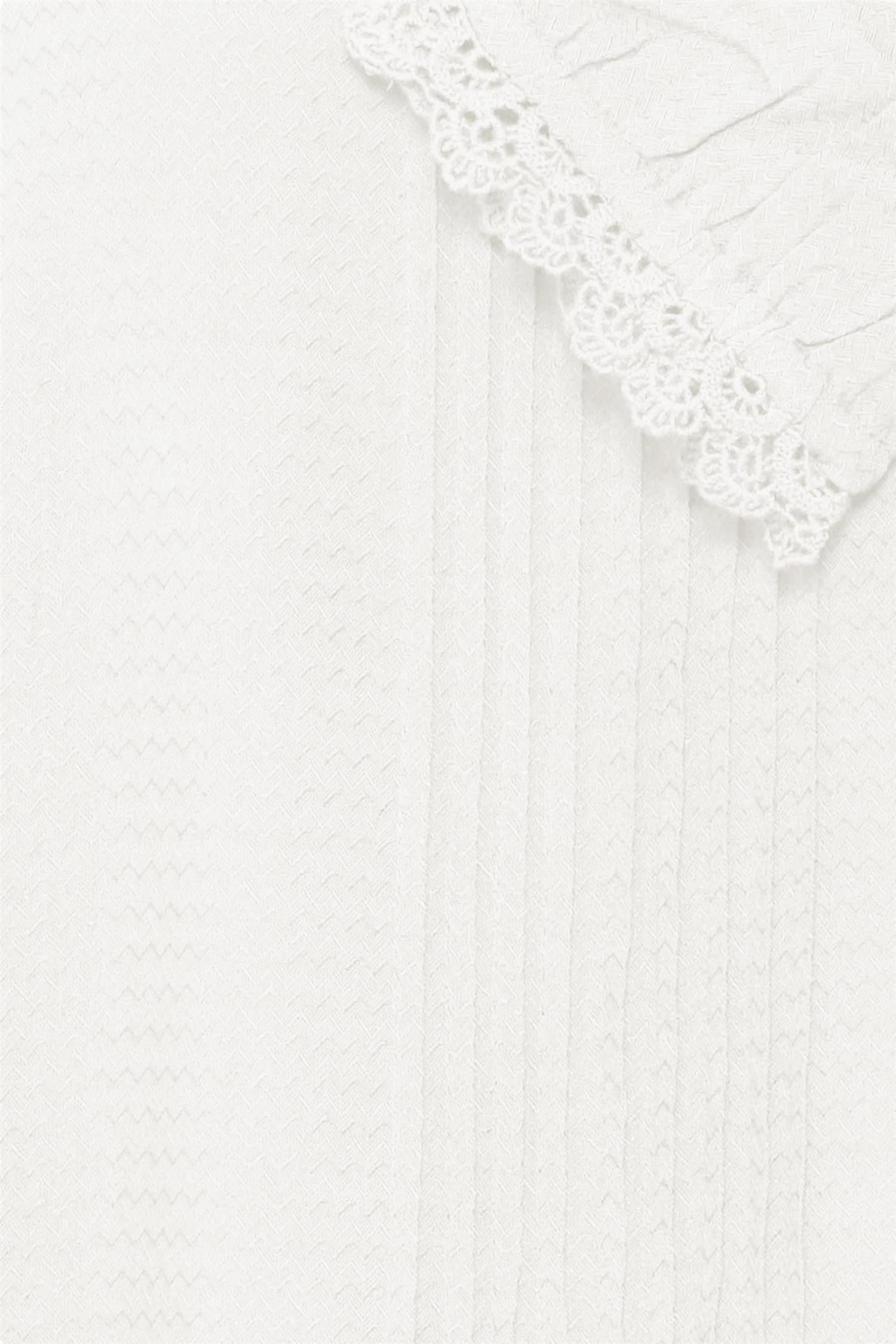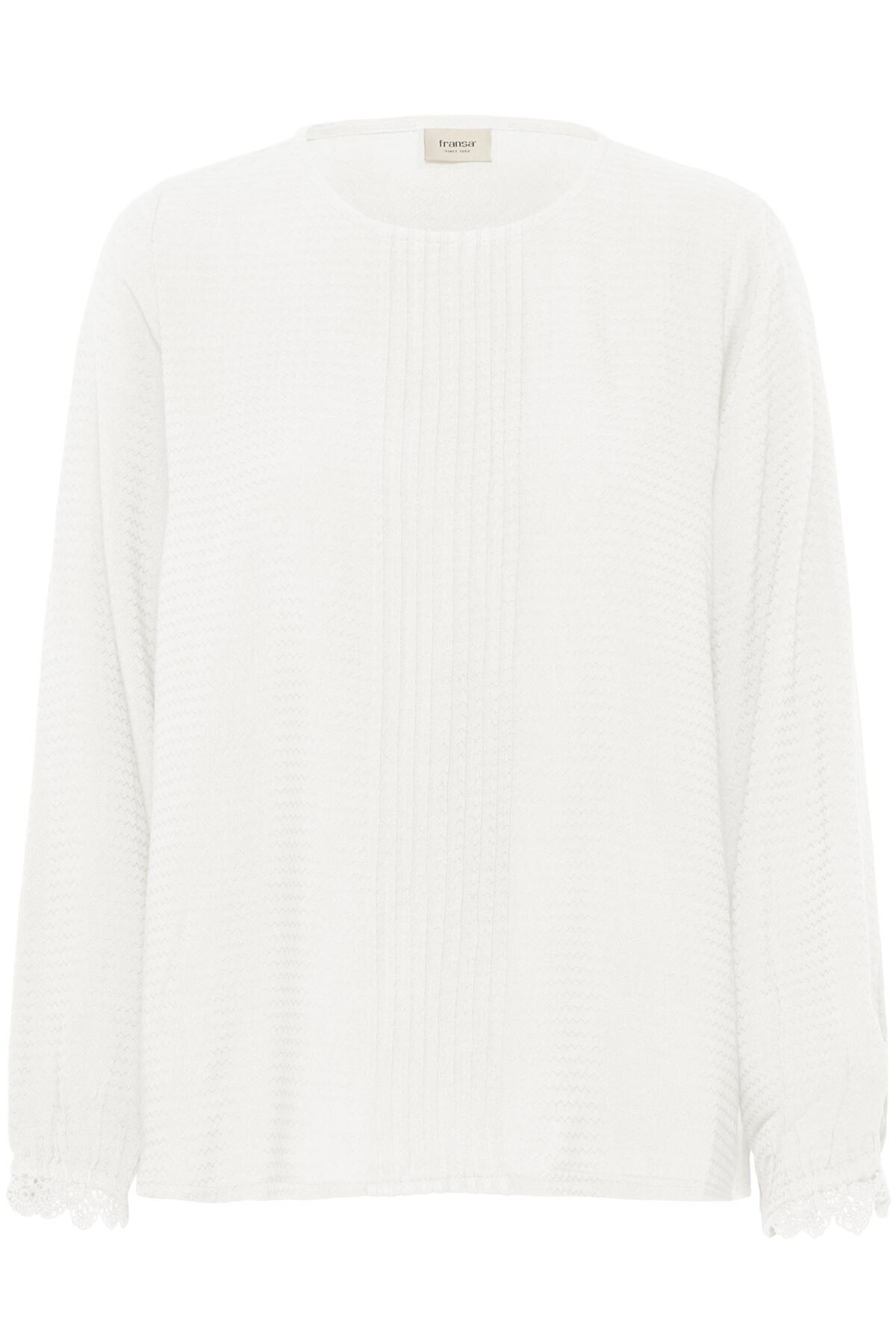 Boatneck bluse fra Fransa. Blusen har lange ermer, strikk i ermet med blondedetaljer. Tilgjengelig i flere farger.