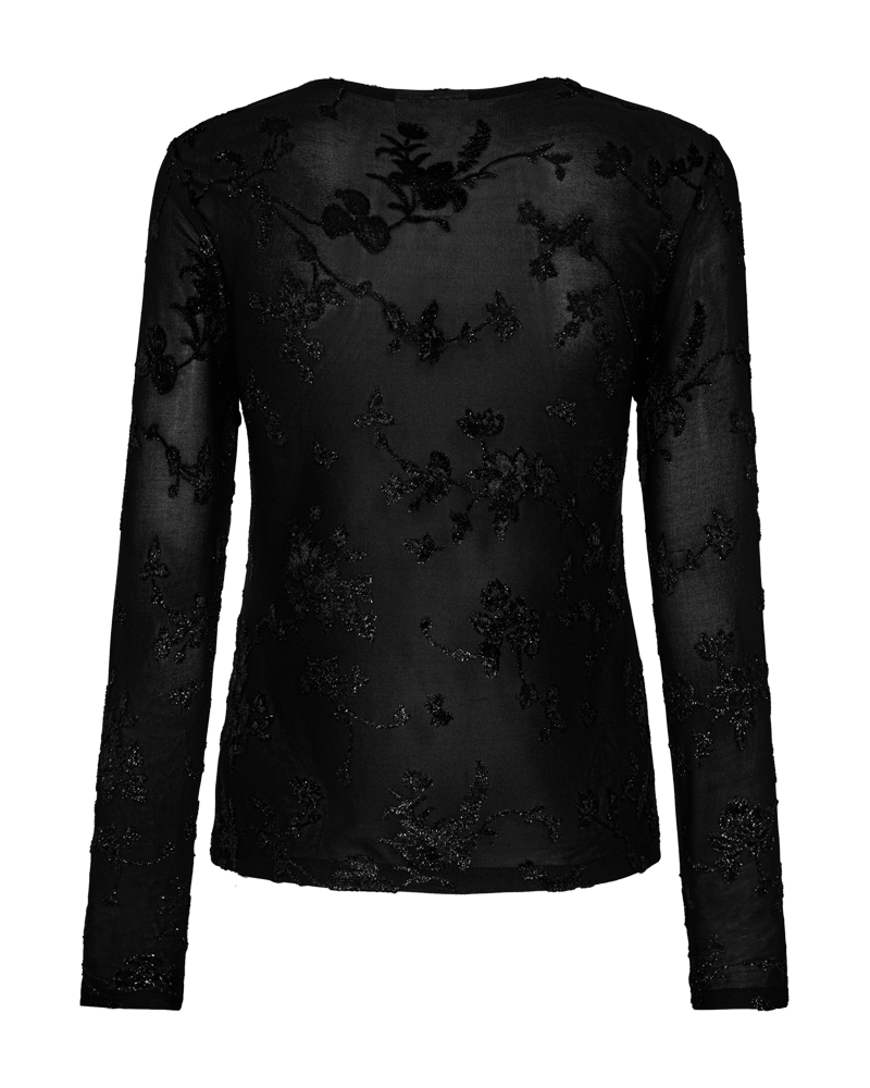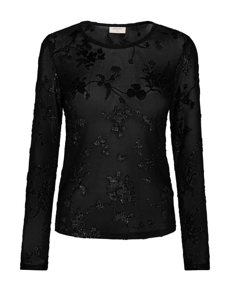 Biska Blouse fra Freequent er en elegant og tidløs bluse med lekre detaljer. Den har lange ermer, rund hals og et feminint snitt som gjør den både behagelig og flatterende. Stoffet har en lett gjennomsiktig effekt med diskré mønster, noe som gir blusen et eksklusivt preg uten å være for prangende.