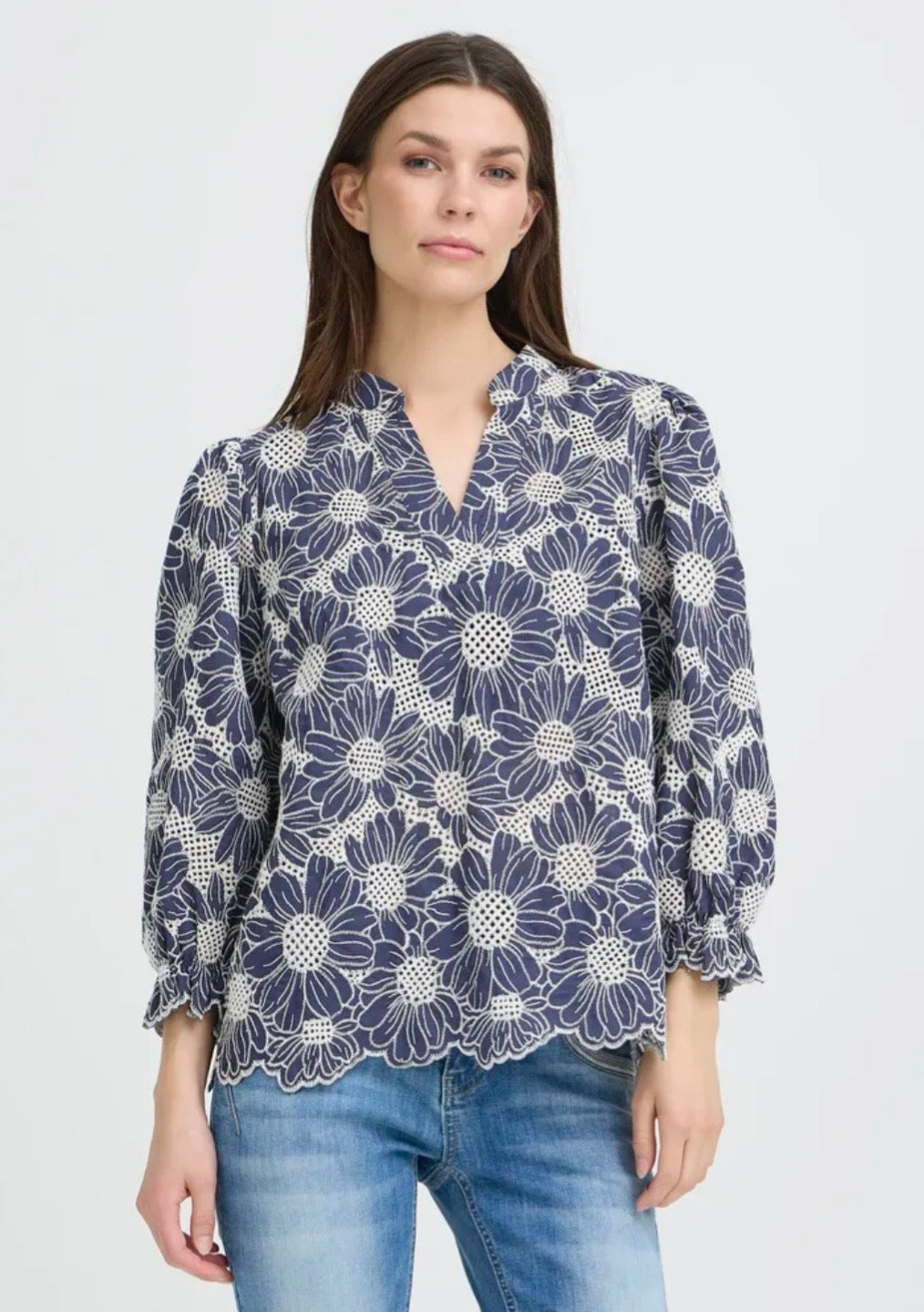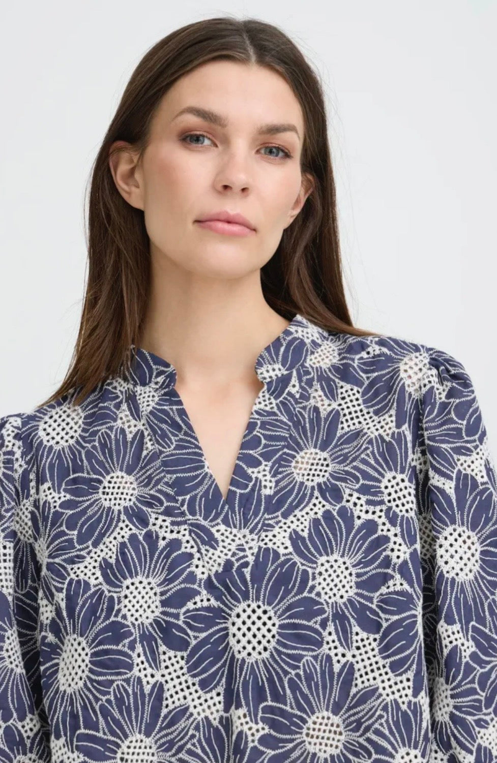 Adele Blouse fra Pulz er en feminim og tidløs bluse med et dekorativt blomsterprint som gir et elegant uttrykk. Den har en lett ståkrage med åpning i front og ermer med myk strikk nederst.
