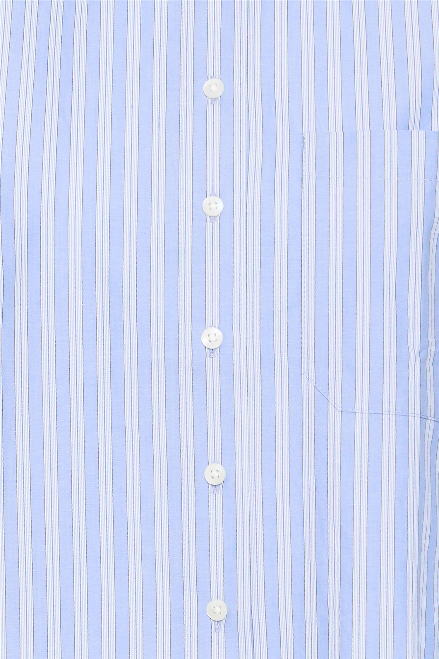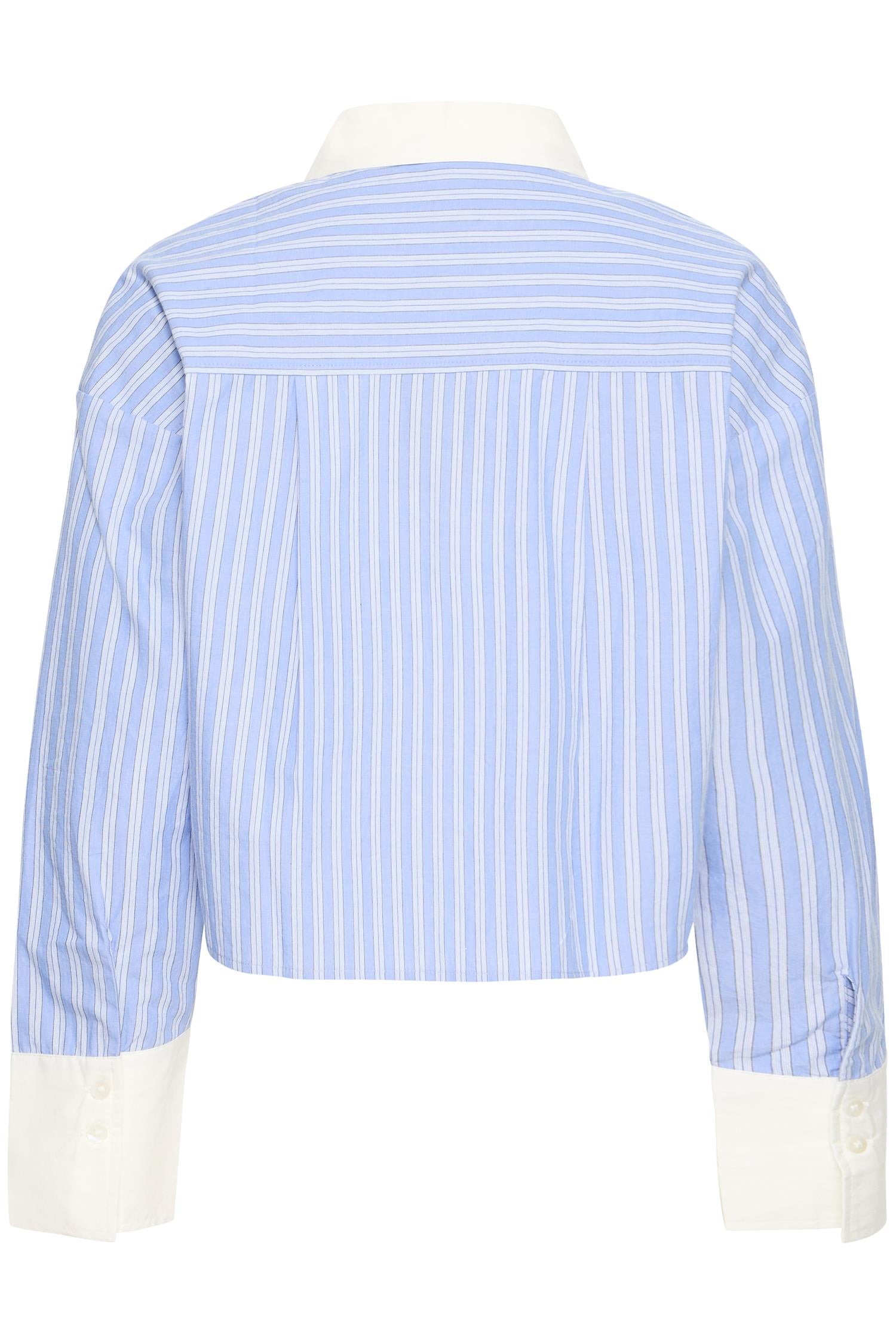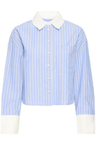 Ricky Shirt fra Fransa er en kort og feminim skjorte med et friskt stripemønster. Den har lange ermer, klassisk krage og en moderne, lett cropped passform som gir et oppdatert uttrykk.