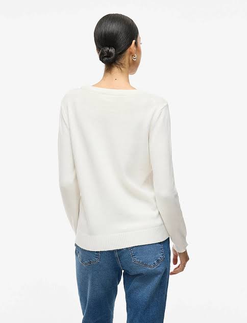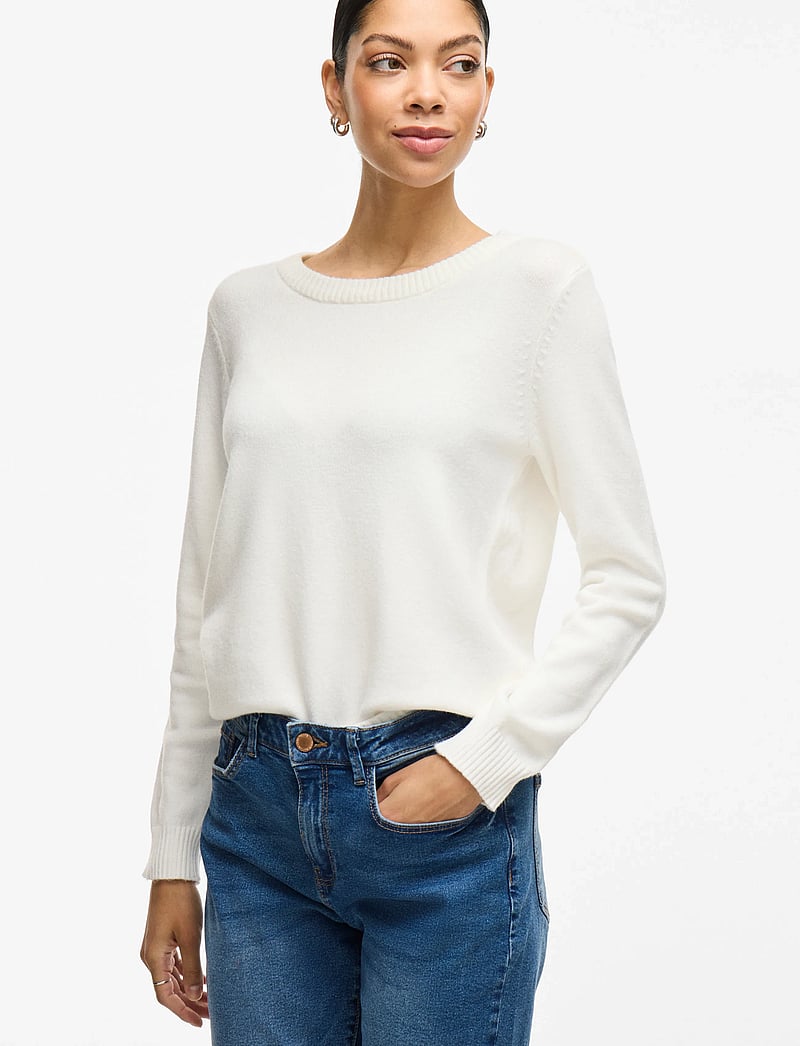 Ril O-Neck Knit Top fra Vila er en finstrikket, langermet genser, laget i et deilig og mykt materiale. Den har ribbet rund hals, ribbestrikk i ermeslutten og på bunnen.