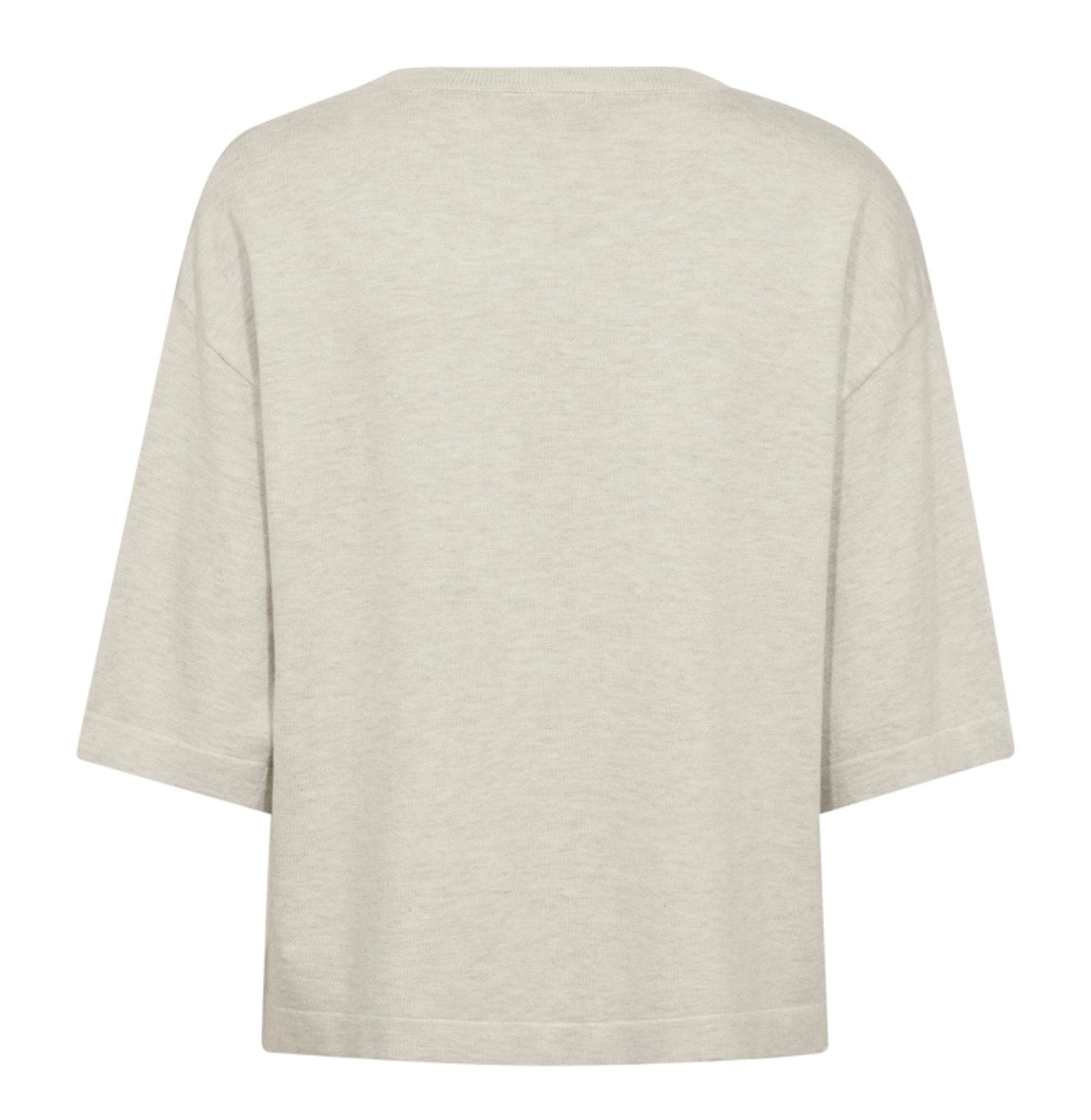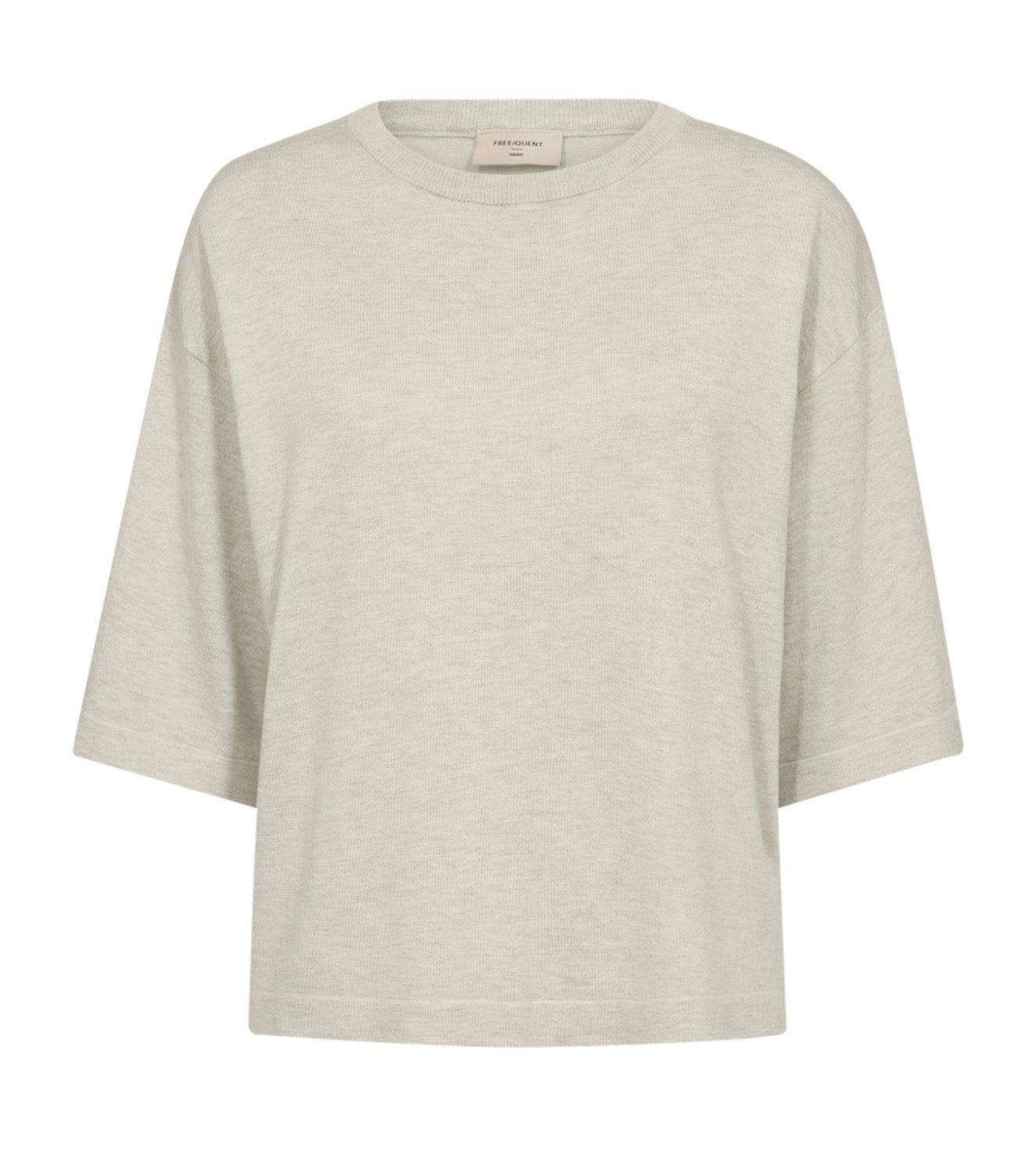 Genser fra Freequent i et mykt, finstrikket materiale. Genseren har en avrundet hals med ribbekant og korte ermer med nedhengte skuldre som fremhever den løse passformen.