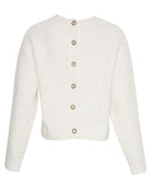 Gittel er en strikkegenser som kan brukes begge veier, både som genser eller cardigan. Genseren er ribbestrikker med brune knapper.
