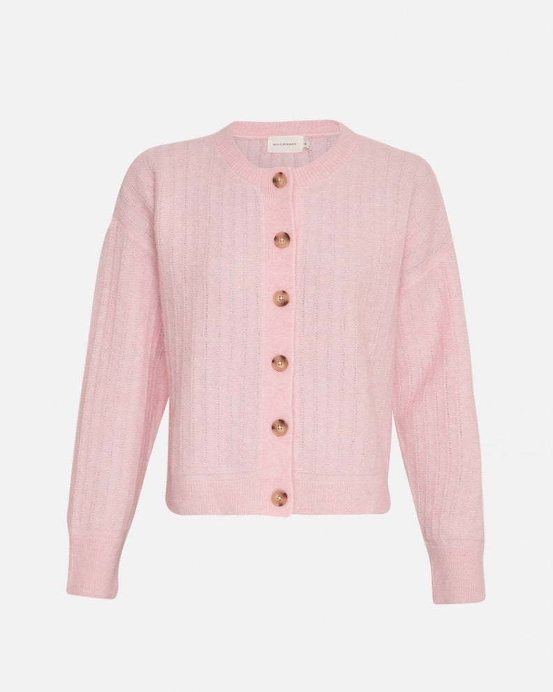 Denne herlige cardiganen fra Moss Copenhagen kombinerer gammeldags sjarm med moderne elementer som droppede skuldre og et diskret mønster i strikketeknikk.