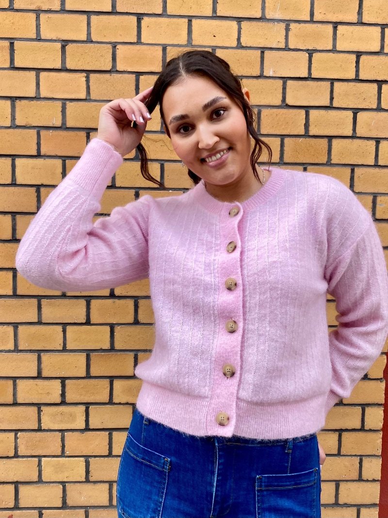 De brune knappene skaper en fin kontrast, og gjør det enkelt å style cardiganen på forskjellige måter, alt etter hvordan du knapper den. Style den med alt fra jeans til skjørt for en feminin og avslappet look.