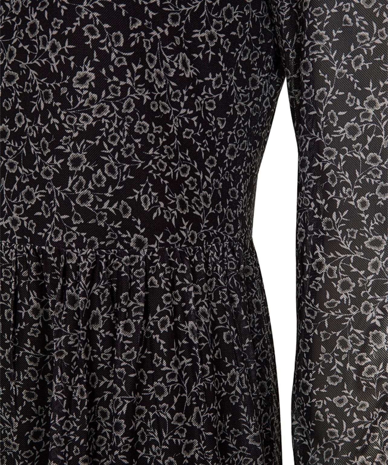 Flott midikjole i mesh med strikk i livet, og nydelig blomster print.
