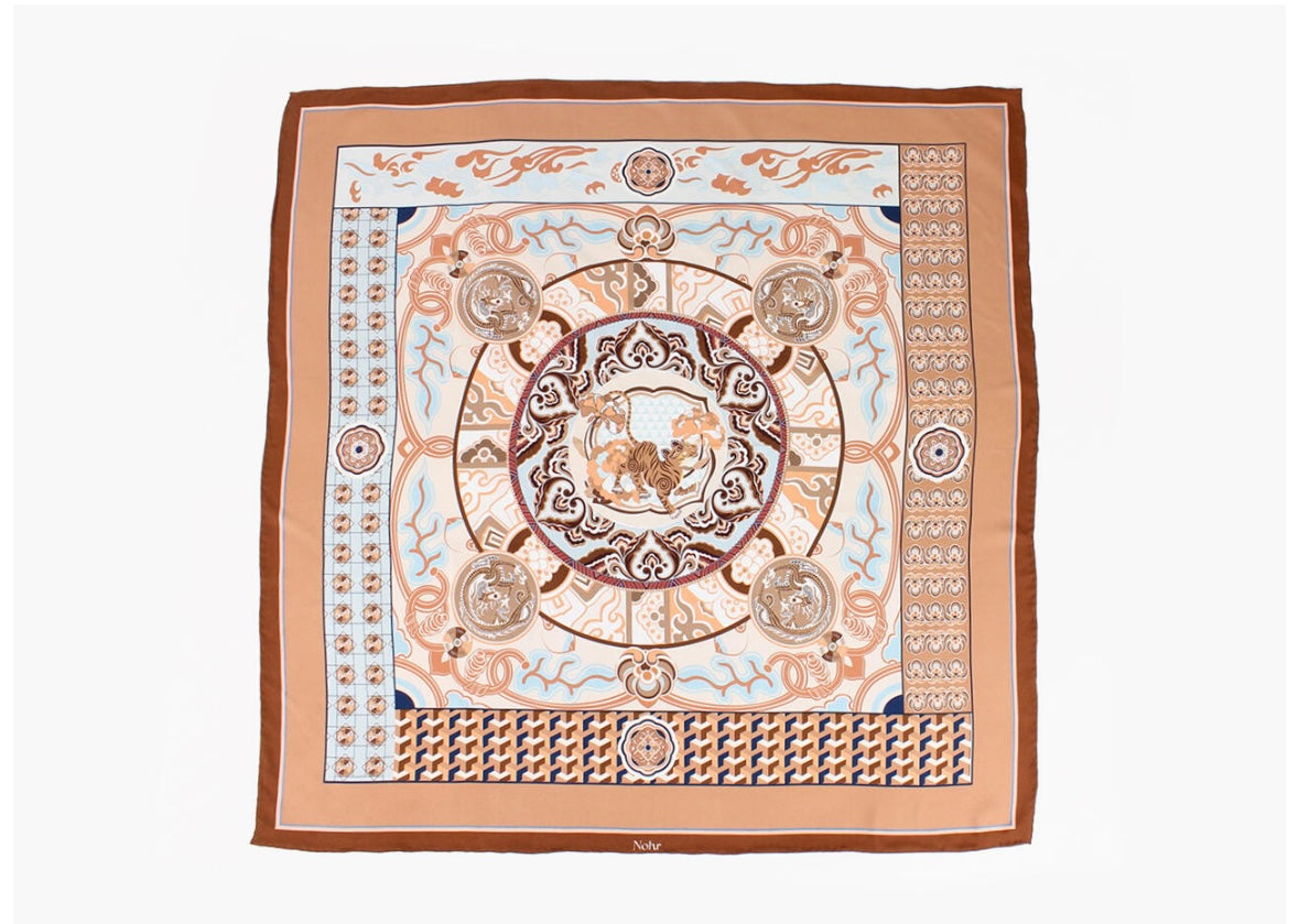 Eksklusivt silkeskjerf med håndsydd rulle-søm. Skjerfet har et to-sidig print som gjør at du får to skjerf i ett.
