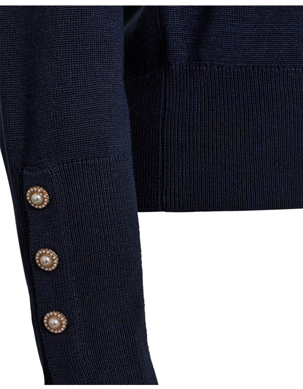 Enkel men elegant genser som kan brukes til alle anledinger. Genseren har rundhals, casual fit og mansjetter med perler.