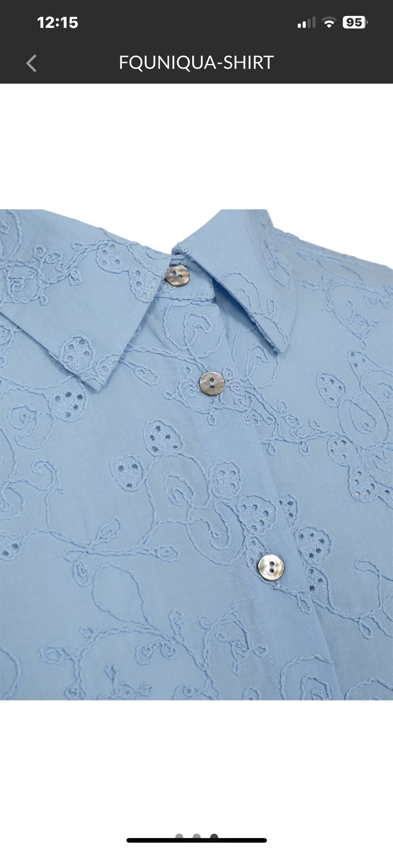 Skjorte med blomstrete mønster. flate knapper med perlemor.