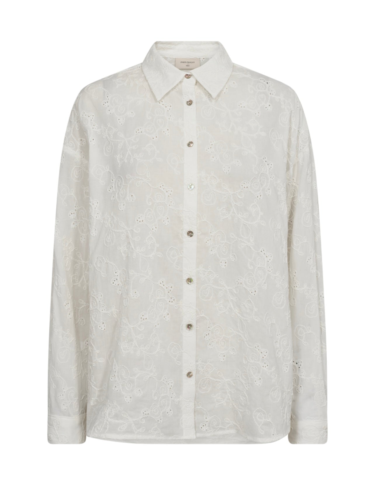 Skjorte med blomstrete mønster. flate knapper med perlemor.