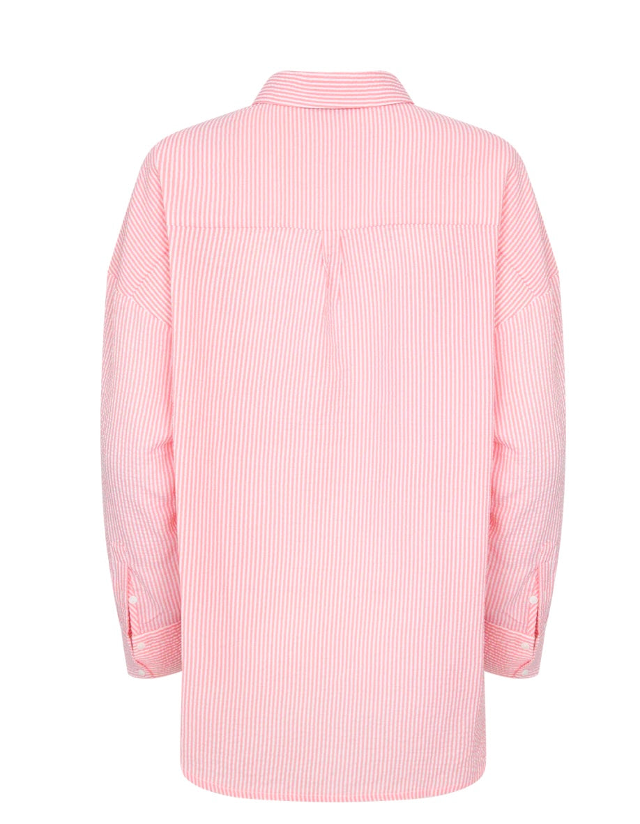 Sonja er en oversized og lang skjorte i seersucker kvalitet. Skjorten har lave skuldersømmer og dobbelmansjetter med to små knapper på.