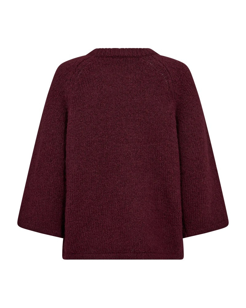 Genser fra Freequent i et mykt, strikket materiale. Genseren har en enkel silhuett med vide trekvart-ermer, avrundet hals, ribbekant og en elegant, løs passform.