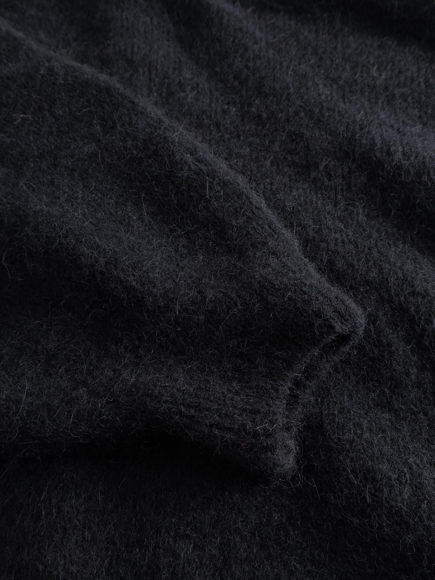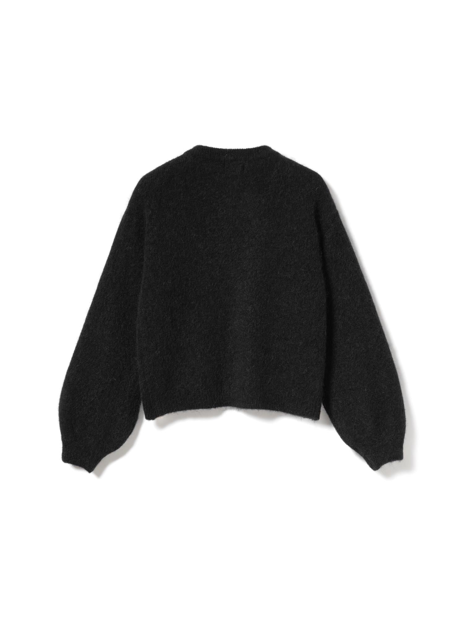 Kae Knit Cardigan er laget av en myk alpakkablanding. Den har et lett og luftig utseende, noe som gjør den perfekt for både kjølige og varme årstider. Cardiganen har en klassisk rund hals, knapper foran og store ermer.