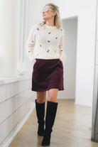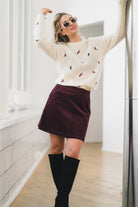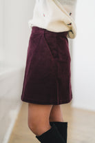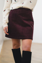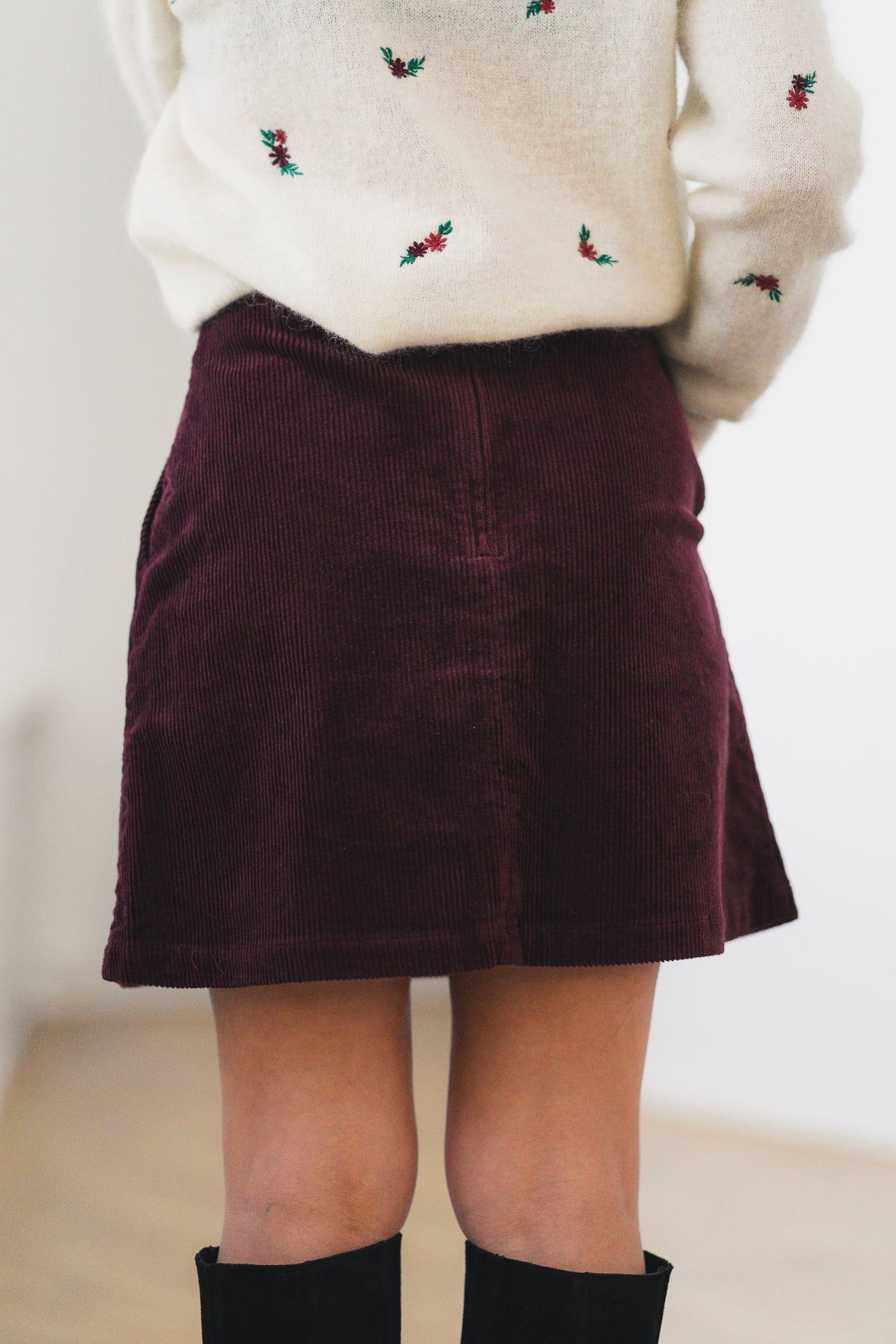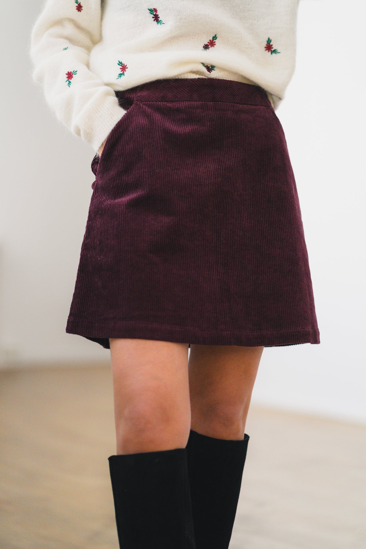 Nydelig Skjørt i myk kordfløyel,som kommer i en dyp burgunderfarge. Det perfekte skjørtet til høsten, kan brukes sammen med både bluser og stikk.
