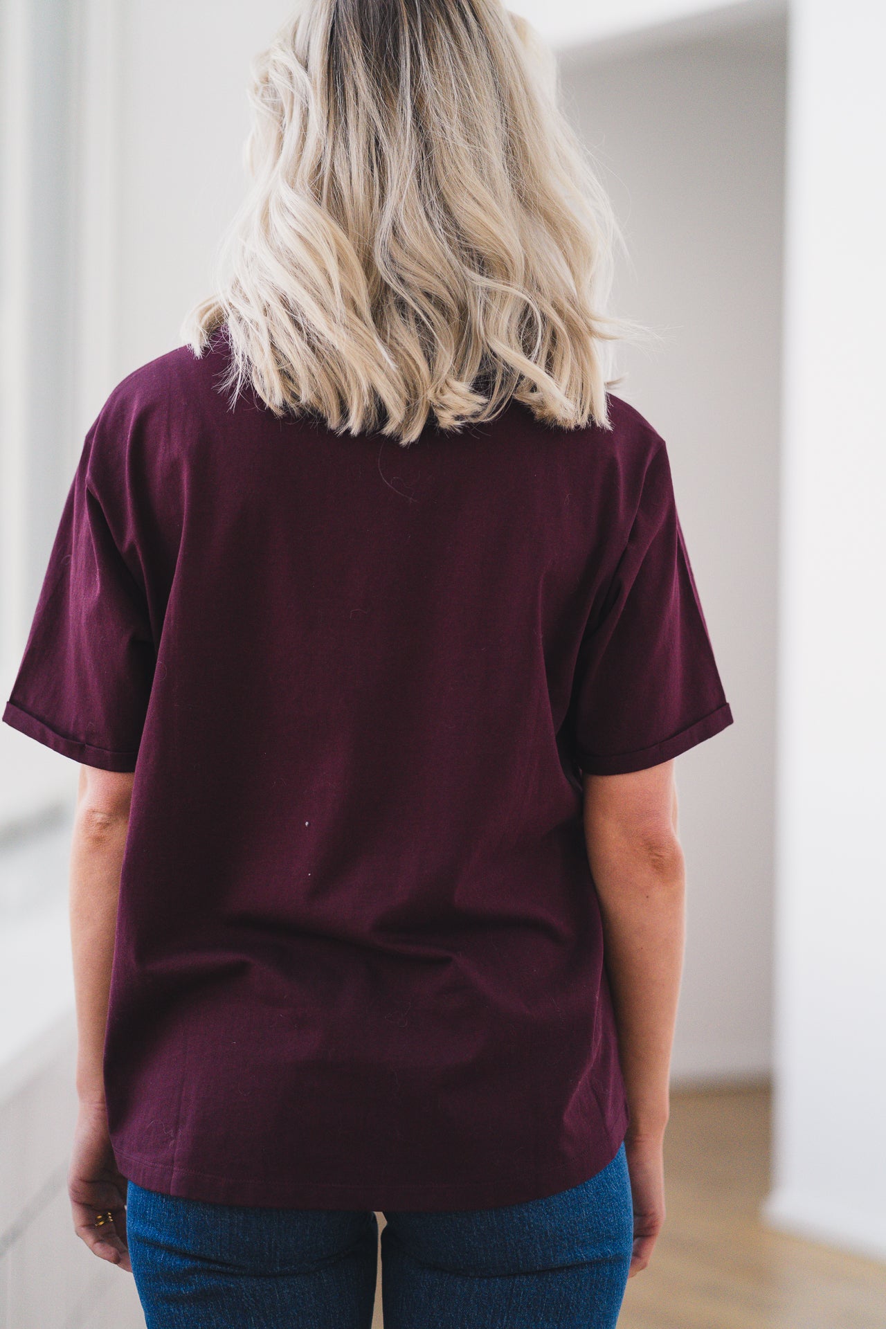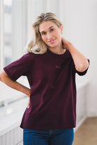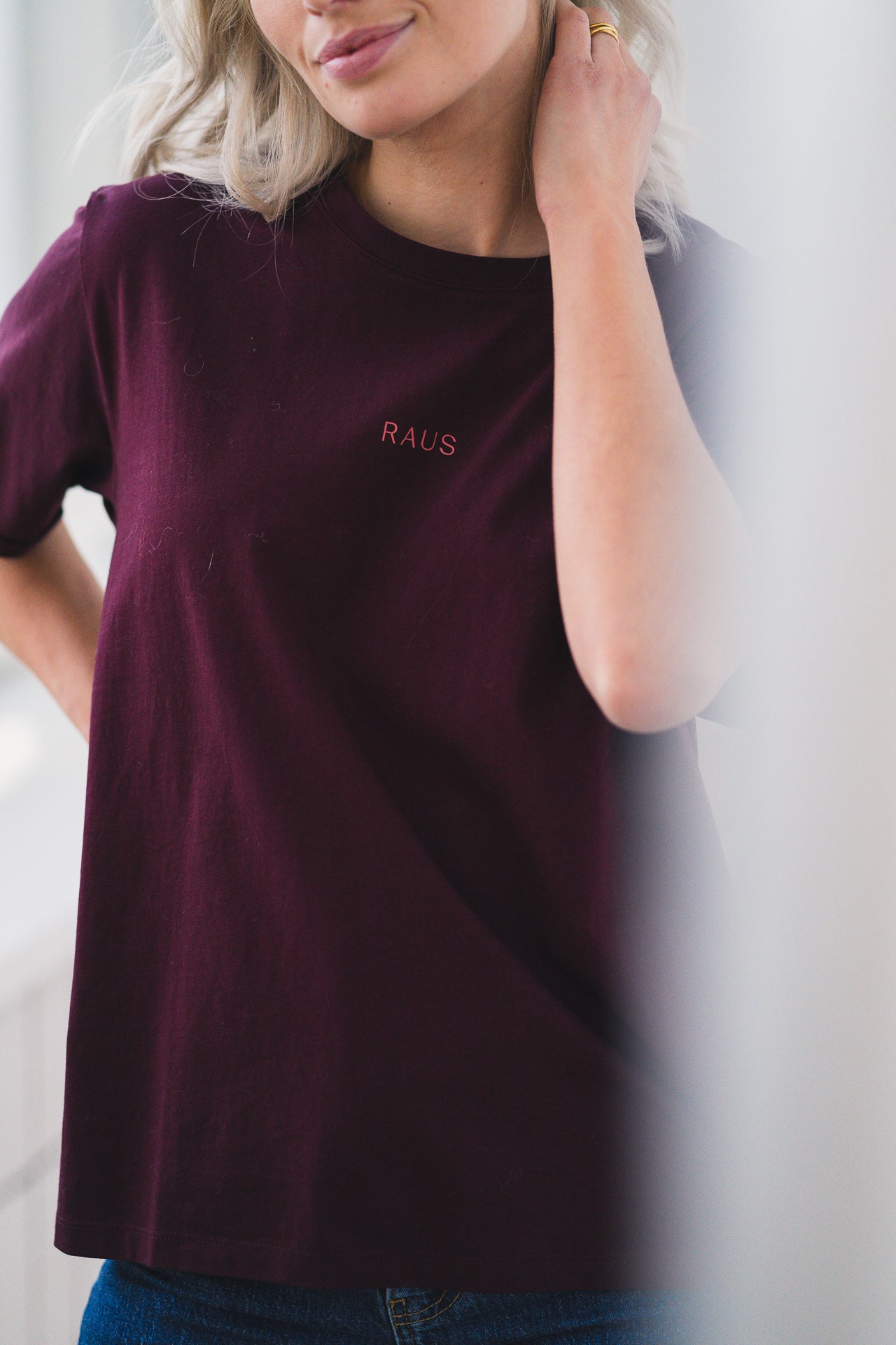 Linn Logo Tee er det perfekte baseplagg fra Raus, som er et must have i kapsel-garderoben. T-skjorten har rund hals, korte ermer og en avslappet passform. Den er laget av behagelig bomullsmateriale som føles meget myk og behagelig på. T-skjorten kommer i burgunder farge med Raus-logo på brystet.