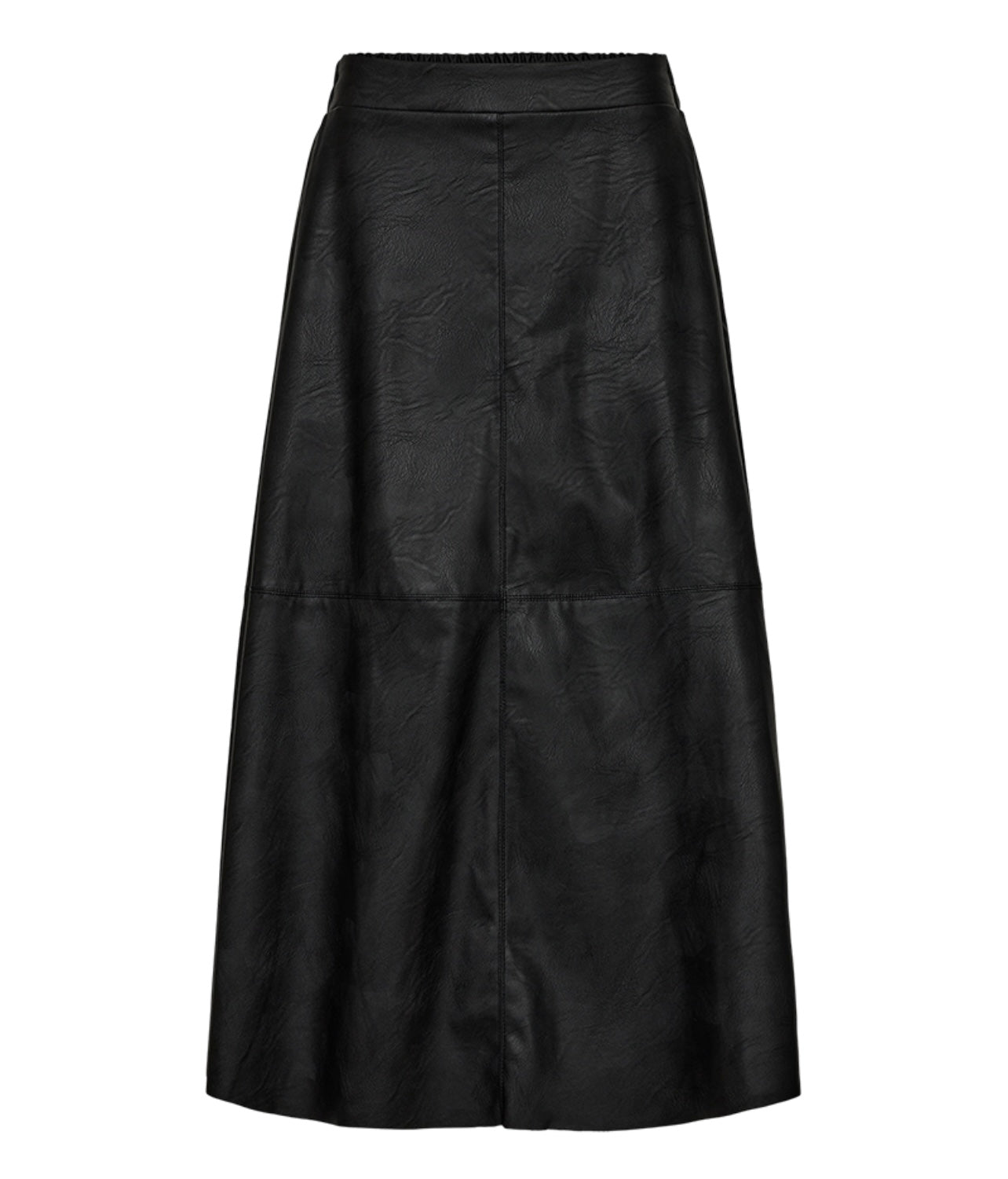 Harley er et langt skjørt i imitert skinn med en tøff A-fasong. Sitter kjempe fint på og passer like fint til hverdags med en strikkegenser, som til fest med partytopp.