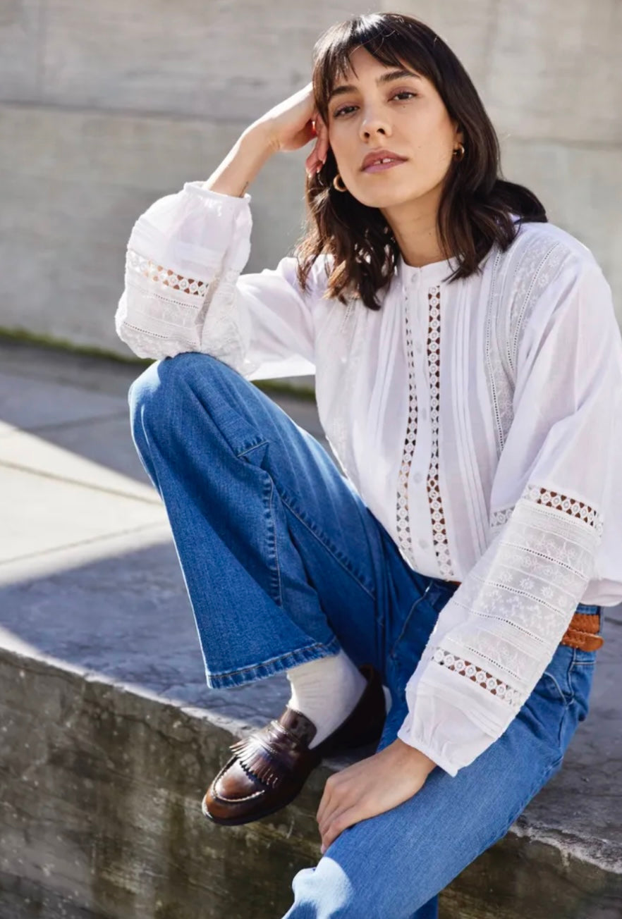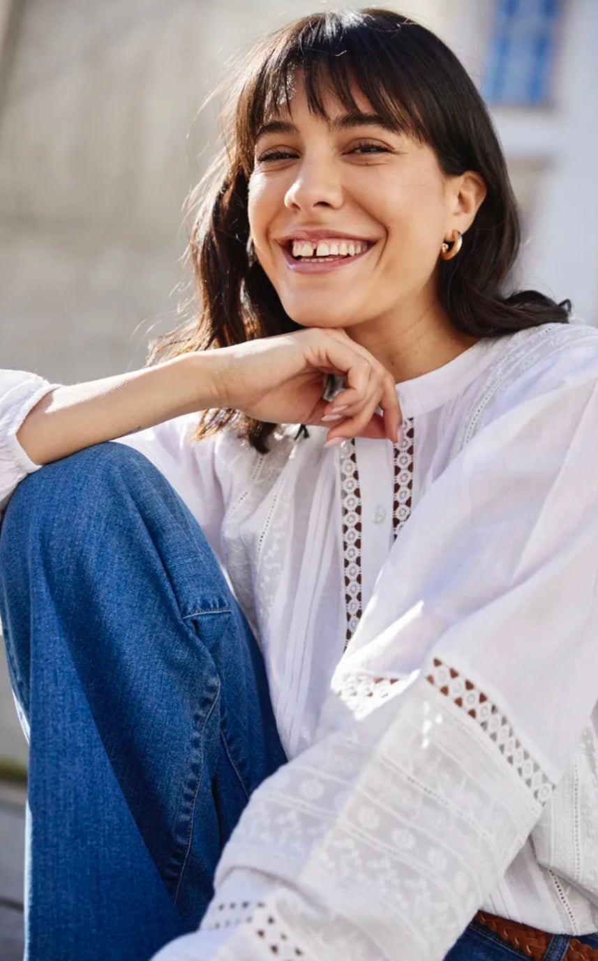 Jike shirt fra Fransa er en feminim og moderne skjorte. Den er designet med vakre blondedetaljer og utskårne paneler som gir et lett og eksklusivt uttrykk, samtidig som passformen er avslappet og behagelig.