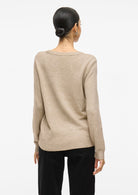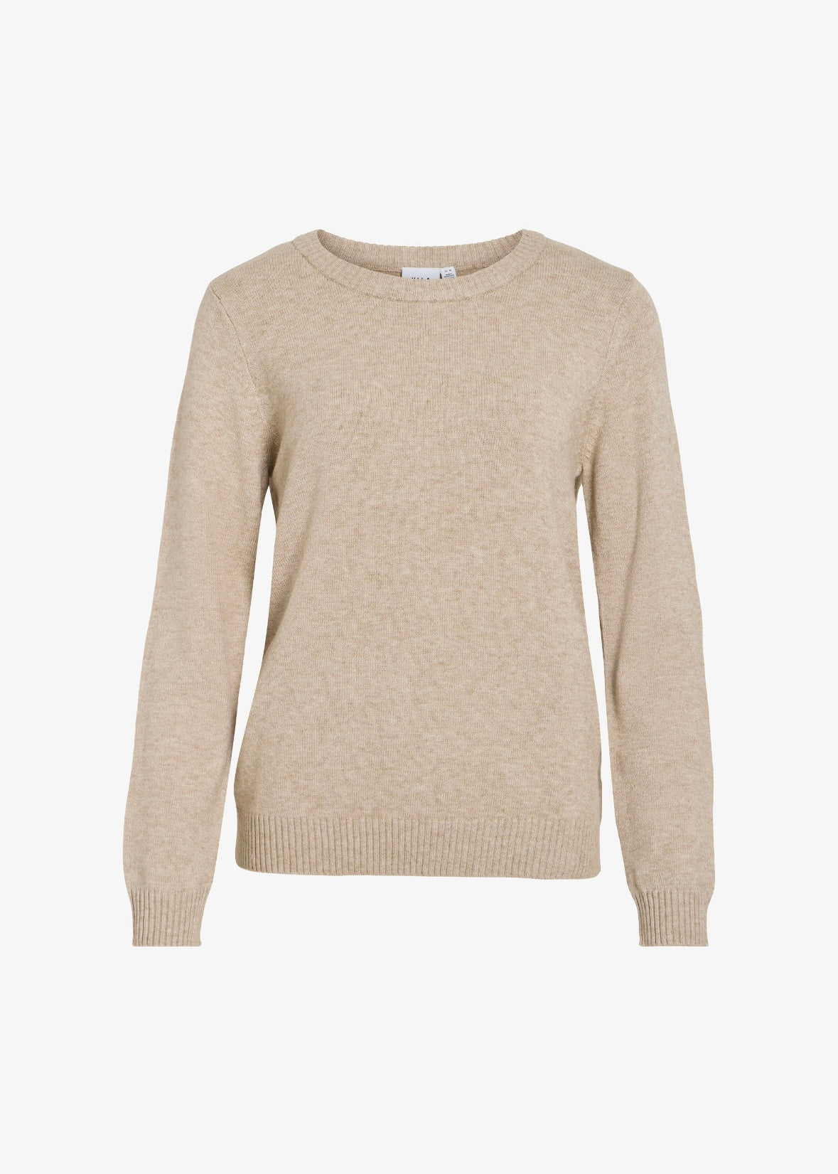 Ril O-Neck Knit Top fra Vila er en finstrikket, langermet genser, laget i et deilig og mykt materiale. Den har ribbet rund hals, ribbestrikk i ermeslutten og på bunnen.
