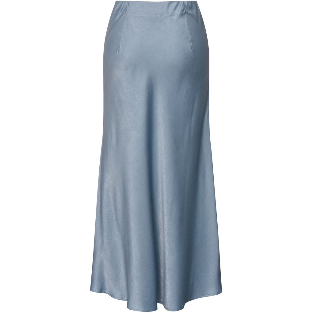 Carry er et skjørt med midi lengde og satinmateriale. Skjørtet har en tettsittende passform og elastisk liv.