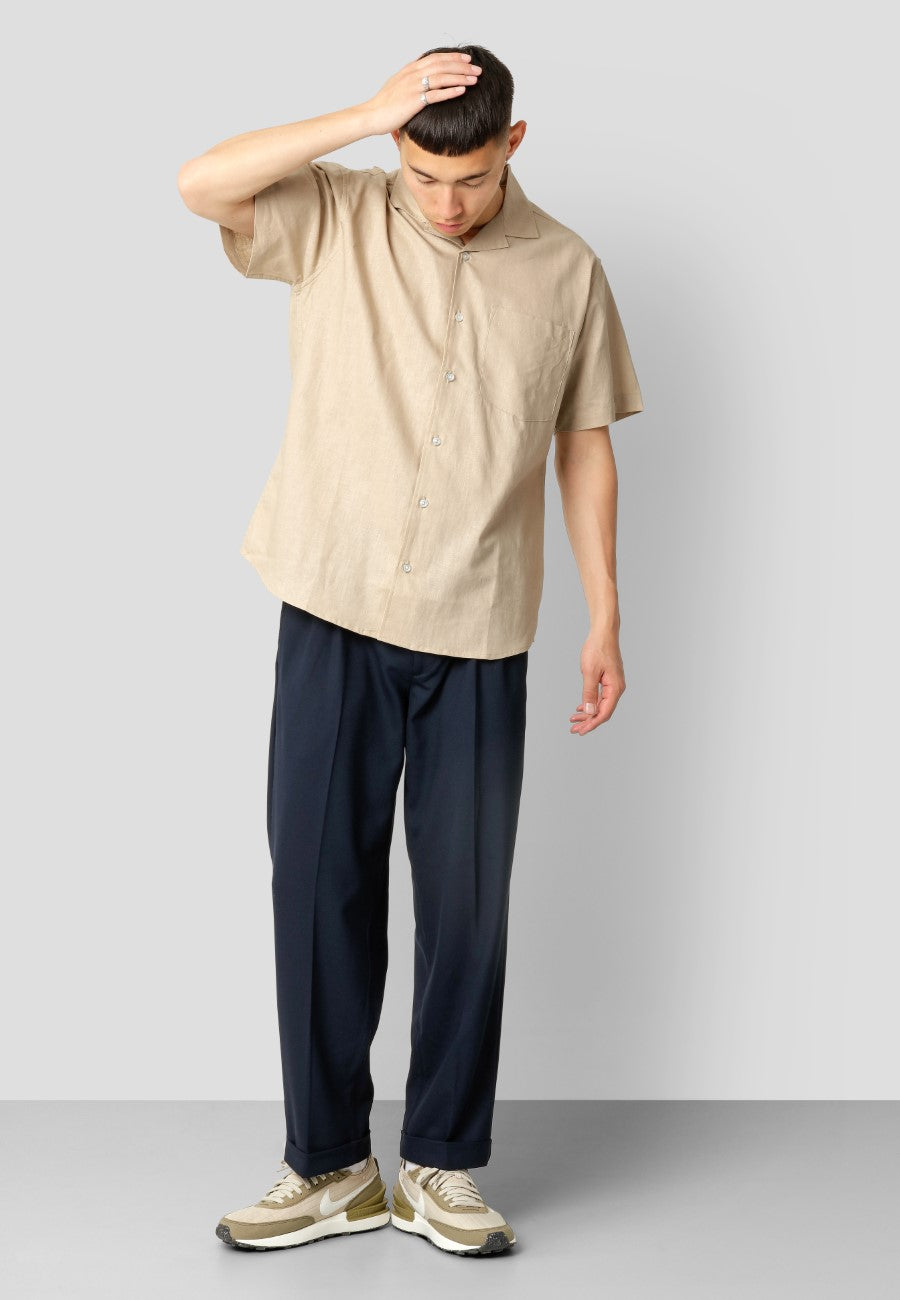 En skjorte laget i en "bowling"-stil, med "mother of pearl" knapper og laget i en bomull/lin-blanding. Passformen er avslappet og tilgjengelig i flere farger samt i en stripet versjon. Vær kul denne sommeren, skaff deg en ny kortermet skjorte!