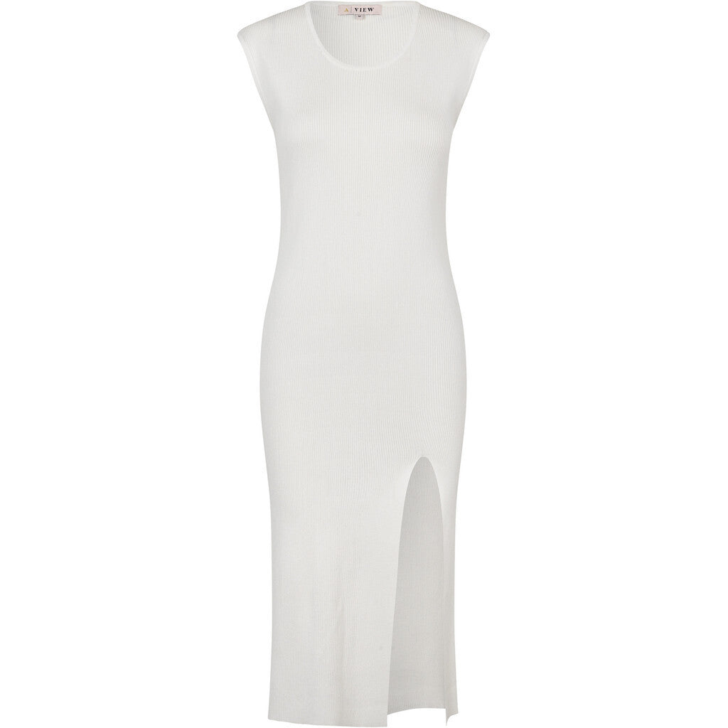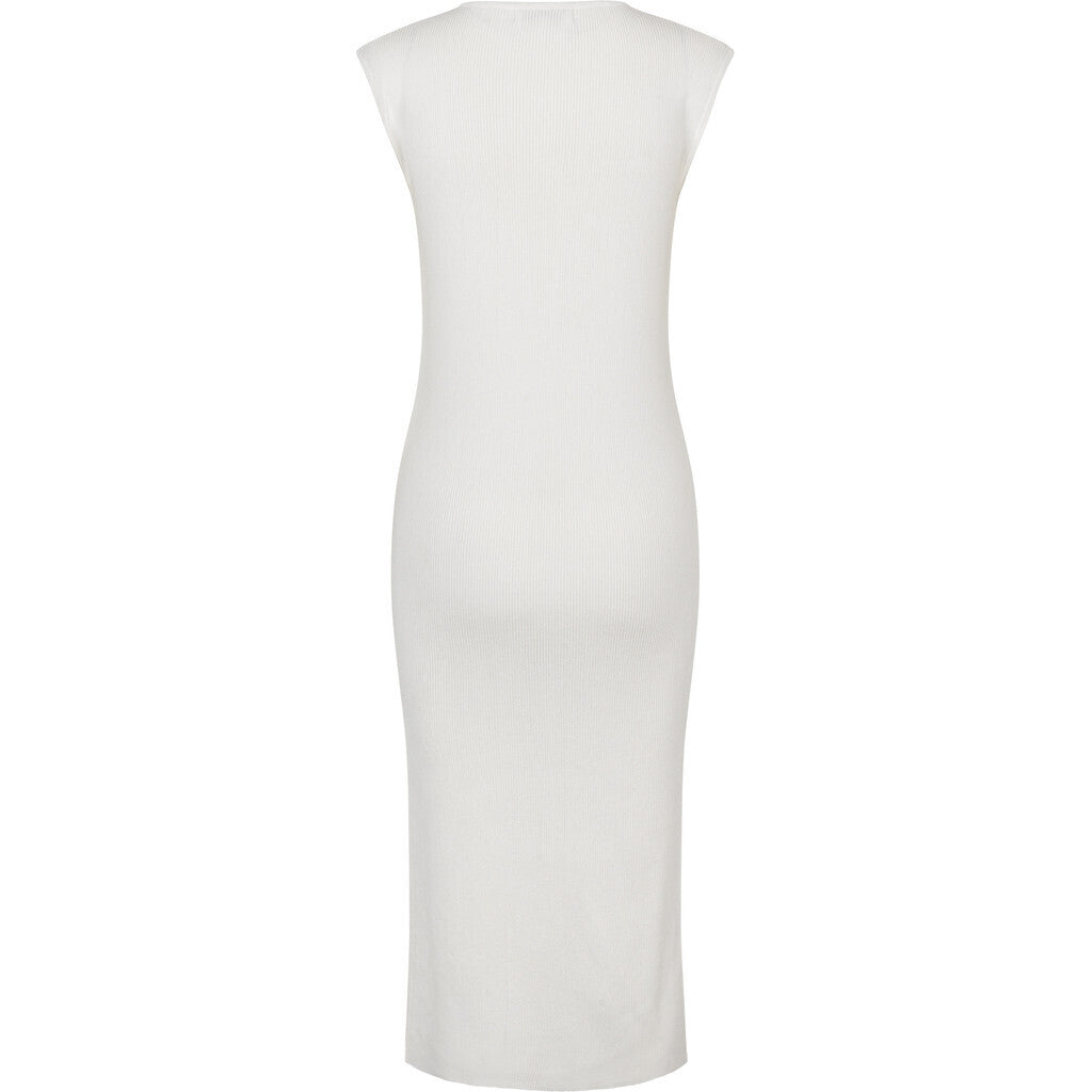 Lang strikket kjole i ribbekvalitet. Kjolen har en tettsittende passform, en rund hals og en splitt i siden.