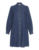 Elena er en myk denimkvalitets kjole, i en svart vasket farge. Denne kjolen har en A-form, med lange puffermer og en mandarinkrage. Kjolen har også to sidelommer. Det er en stil som er flott til alle årstider da den kan styles på så mange forskjellige, kreative måter.