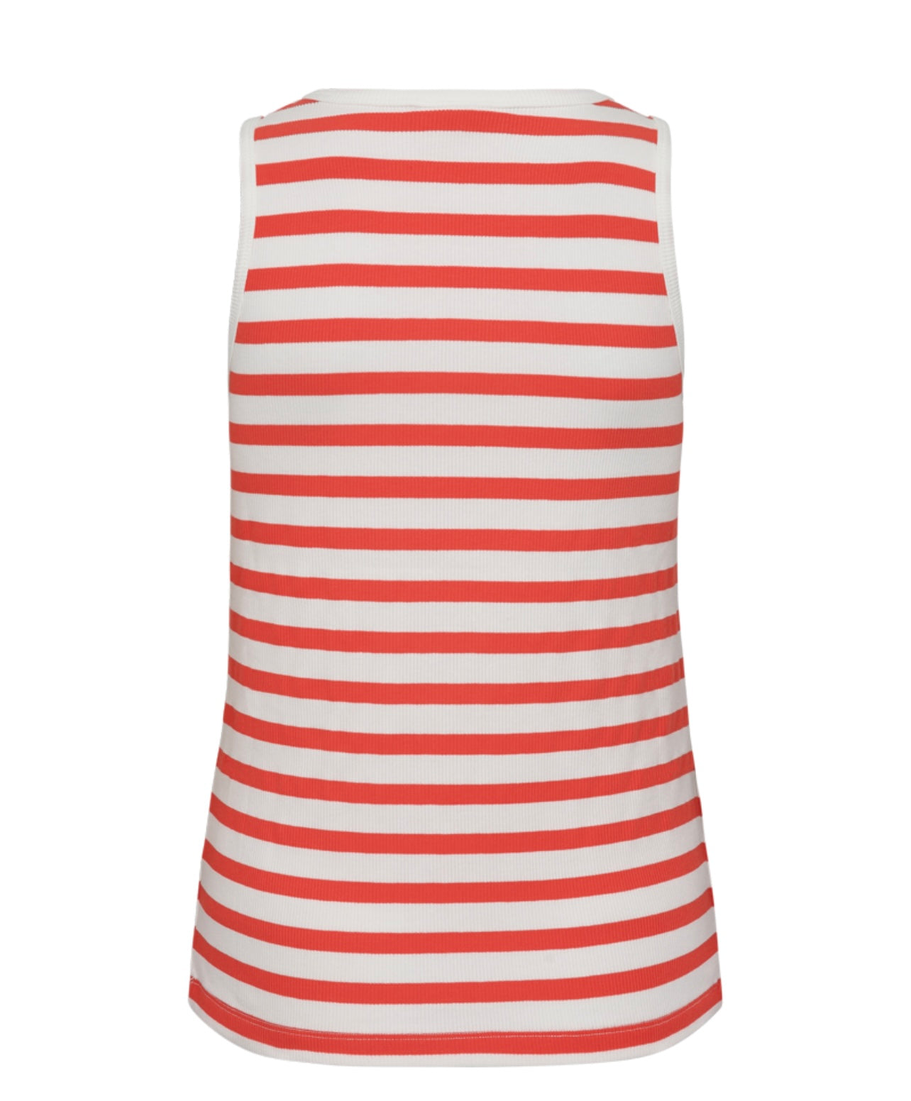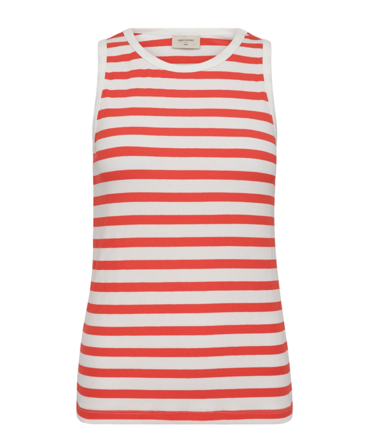 Effy Top fra Freequent er en stilren og komfortabel topp laget i et mykt, ribbestrikket materiale med et tidløst stripemønster. Toppen har brede skulderstropper, en rund hals og en tettsittende passform som gir både komfort og en moderne silhuett. Perfekt for både hverdag og kveldsbruk, enten alene eller som et lag-på-lag-plagg!