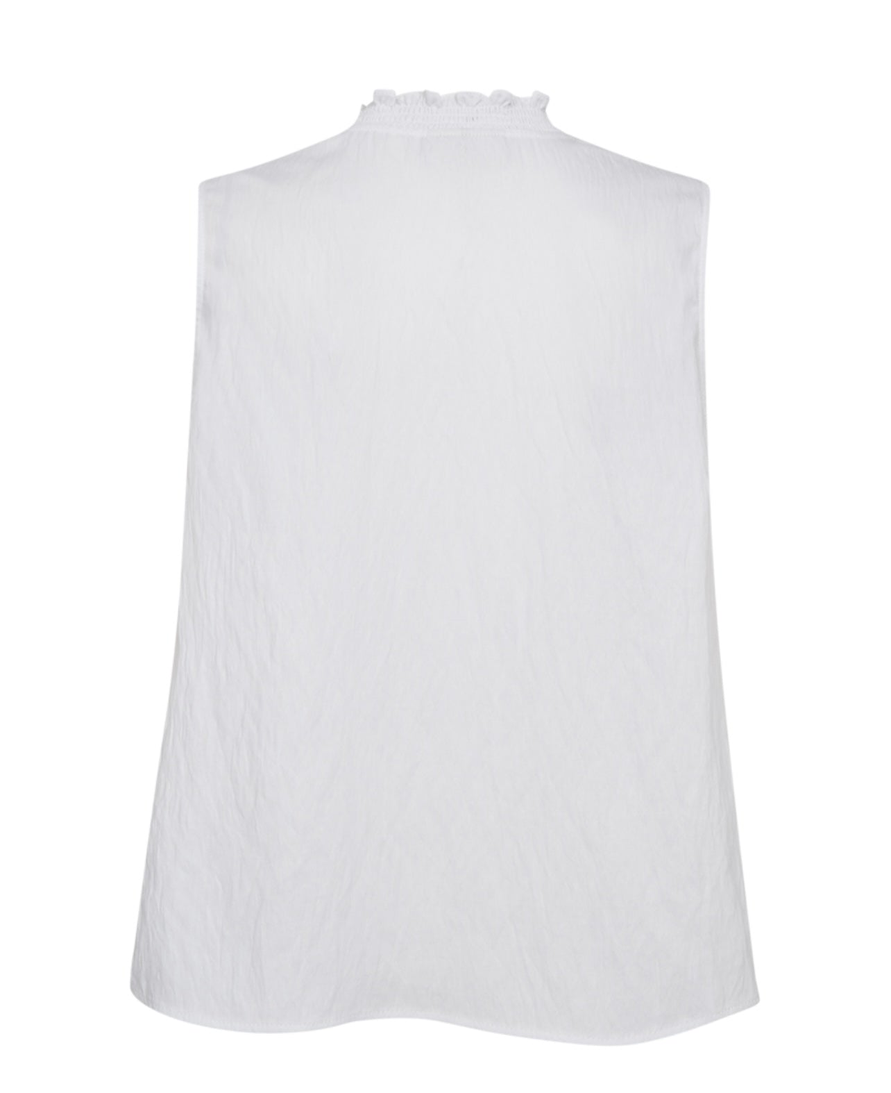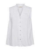 En enkel men likevel fin bluse fra Freequent, uten ermer. Perfekt for sommeren og varmere dager! Ally er en lett og luftig bluse uten ermer og med knappelukking i front. Blusen har en flott v-utskjæring og rynkedetaljer.