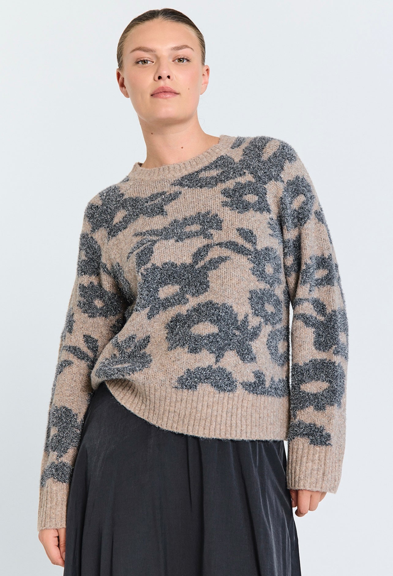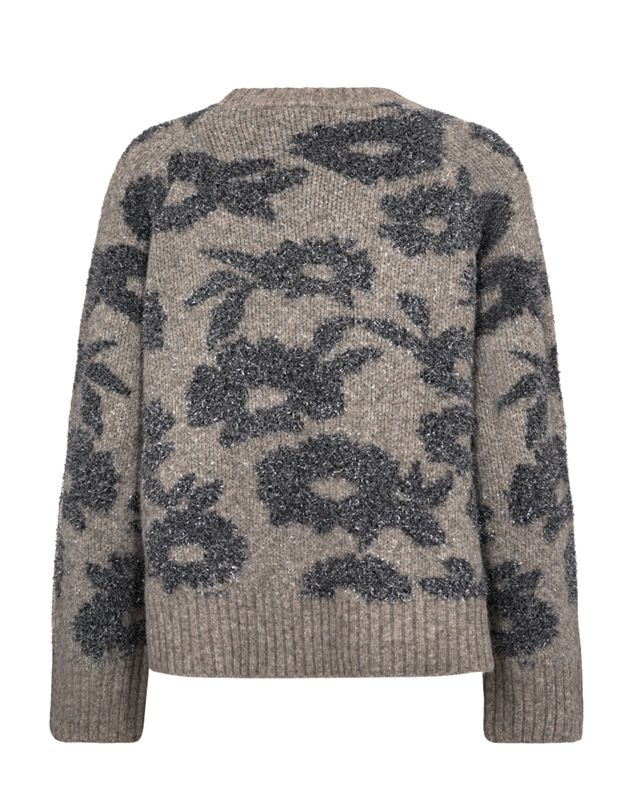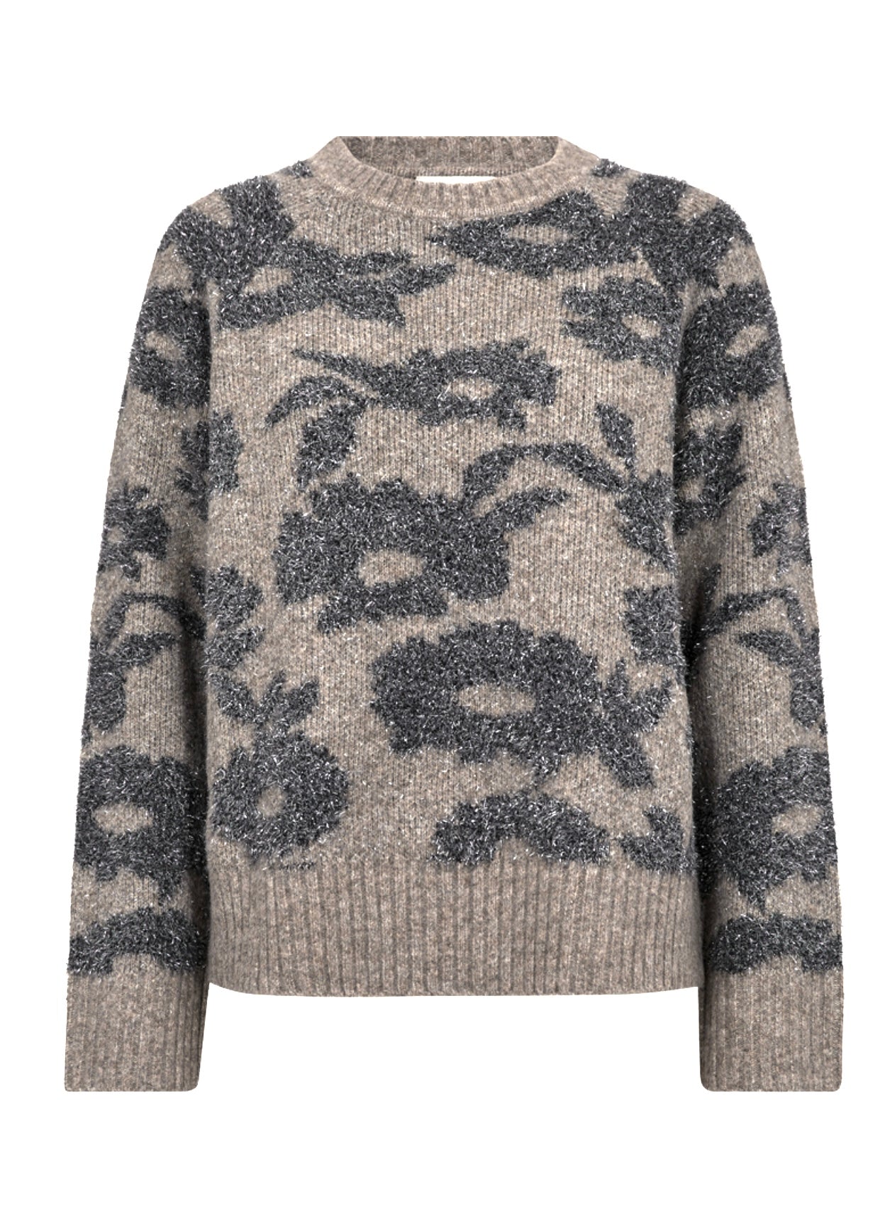 Pantea Pullover fra Freequent er en stilfull genser, med mønster og en glitrende finish, som løfter ethvert antrekk. Den har rund hals, lange ermer og en klassisk passform som gjør den både behagelig og anvendig.
